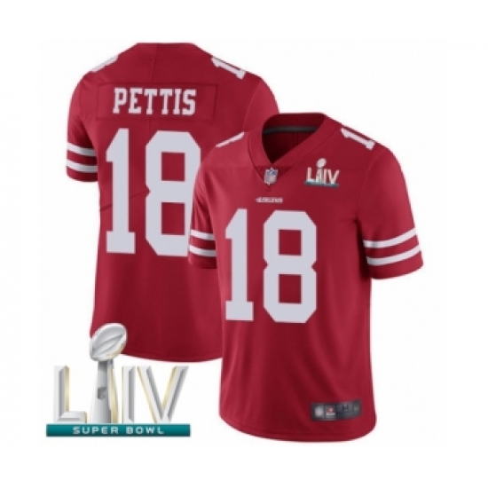 Men's San Francisco 49ers #18 Dante Pettis Red Team Color Vapor Untouchable Limited Player Super Bowl LIV Bound Football Jersey