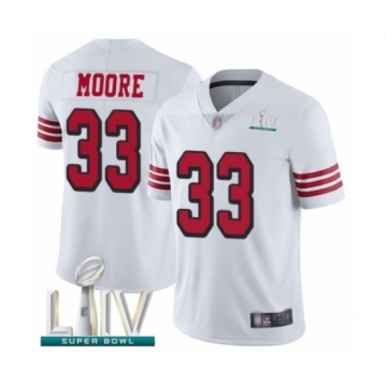 >Youth San Francisco 49ers #33 Tarvarius Moore Limited White Rush Vapor Untouchable Super Bowl LIV Bound Football Jersey