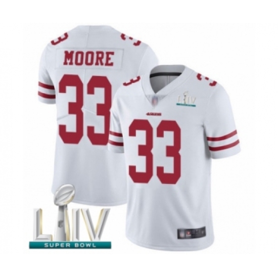 >Youth San Francisco 49ers #33 Tarvarius Moore White Vapor Untouchable Limited Player Super Bowl LIV Bound Football Jersey