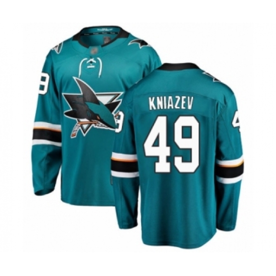>Youth San Jose Sharks #49 Artemi Kniazev Fanatics Branded Teal Green Home Breakaway Hockey Jersey