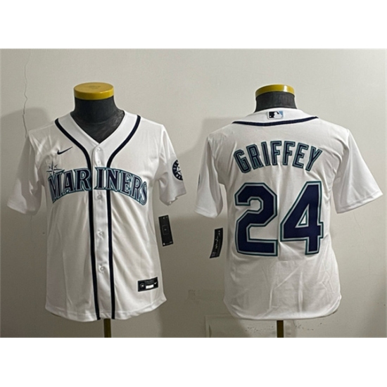 Youth Seattle Mariners #24 Ken Griffey Jr. White Cool Base Stitched Baseball Jersey