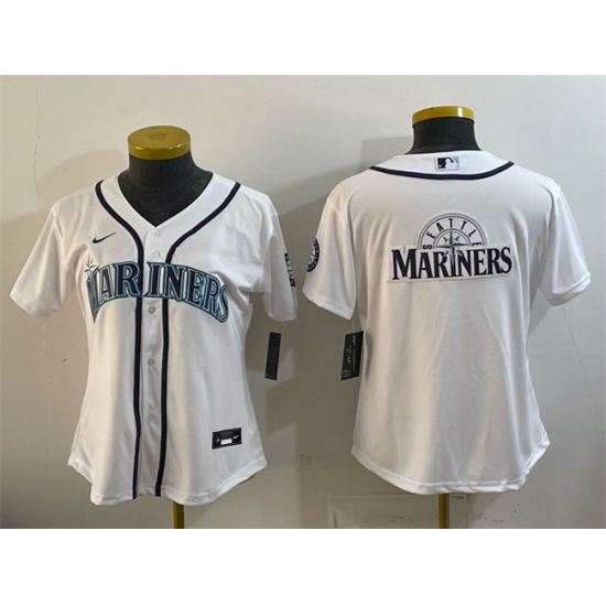 Women's Seattle Mariners Team Big Logo White Cool Base Stitched Baseball Jersey(Run Small)