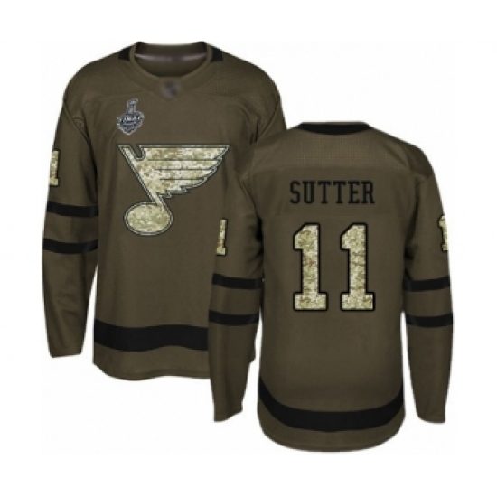 Men's St. Louis Blues #11 Brian Sutter Authentic Green Salute to Service 2019 Stanley Cup Champions Hockey Jersey