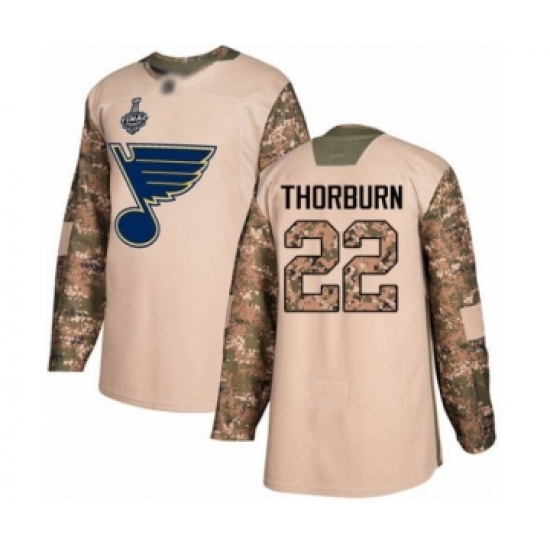 >Youth St. Louis Blues #22 Chris Thorburn Authentic Camo Veterans Day Practice 2019 Stanley Cup Final Bound Hockey Jersey