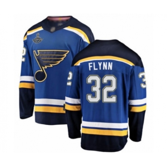 >Youth St. Louis Blues #32 Brian Flynn Fanatics Branded Royal Blue Home Breakaway 2019 Stanley Cup Champions Hockey Jersey