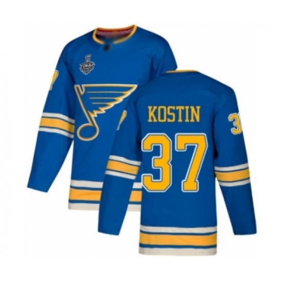 >Youth St. Louis Blues #37 Klim Kostin Authentic Navy Blue Alternate 2019 Stanley Cup Final Bound Hockey Jersey