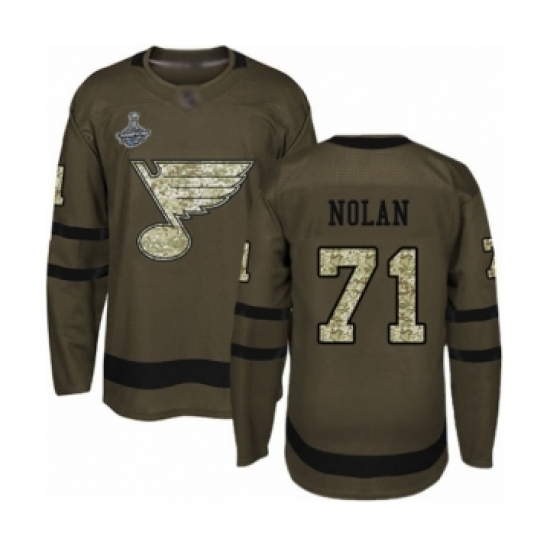 Youth St. Louis Blues #71 Jordan Nolan Authentic Green Salute to Service 2019 Stanley Cup Champions Hockey Jersey