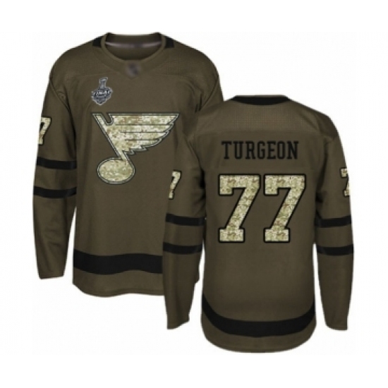 Youth St. Louis Blues #77 Pierre Turgeon Authentic Green Salute to Service 2019 Stanley Cup Final Bound Hockey Jersey