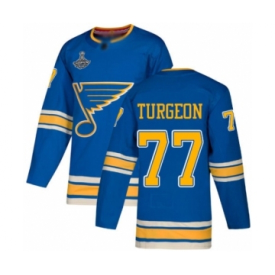 >Youth St. Louis Blues #77 Pierre Turgeon Authentic Navy Blue Alternate 2019 Stanley Cup Champions Hockey Jersey