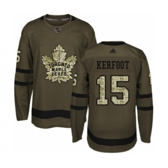 Youth Toronto Maple Leafs #15 Alexander Kerfoot Authentic Green Salute to Service Hockey Jersey