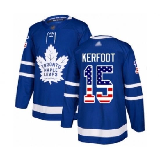 Men's Toronto Maple Leafs #15 Alexander Kerfoot Authentic Royal Blue USA Flag Fashion Hockey Jersey