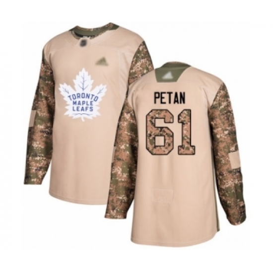 >Youth Toronto Maple Leafs #61 Nic Petan Authentic Camo Veterans Day Practice Hockey Jersey