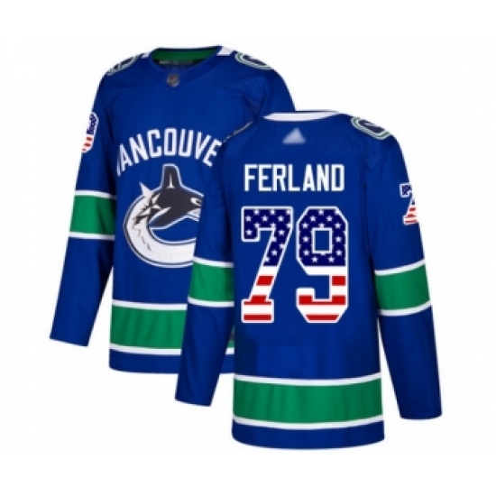 >Youth Vancouver Canucks #79 Michael Ferland Authentic Blue USA Flag Fashion Hockey Jersey