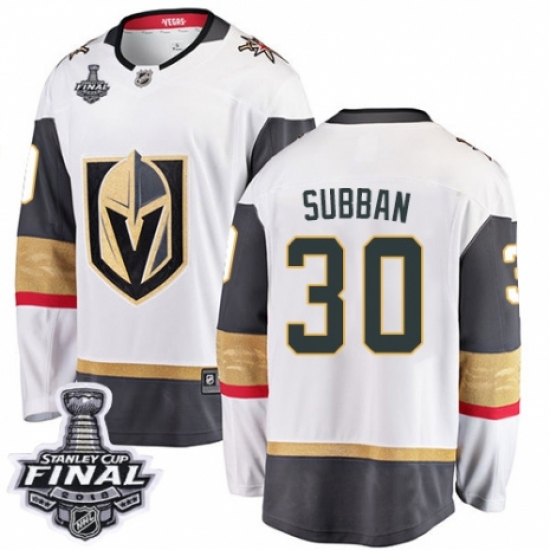 >Youth Vegas Golden Knights #30 Malcolm Subban Authentic White Away Fanatics Branded Breakaway 2018 Stanley Cup Final NHL Jersey