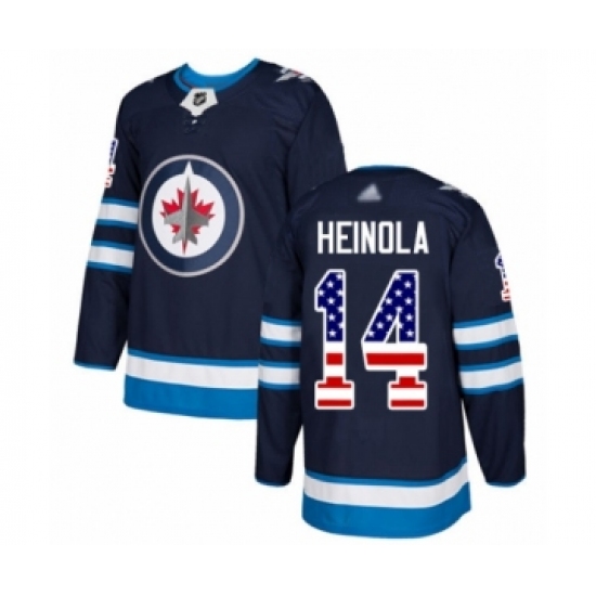 >Youth Winnipeg Jets #14 Ville Heinola Authentic Navy Blue USA Flag Fashion Hockey Jersey