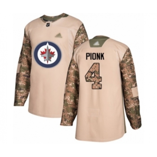 >Youth Winnipeg Jets #4 Neal Pionk Authentic Camo Veterans Day Practice Hockey Jersey