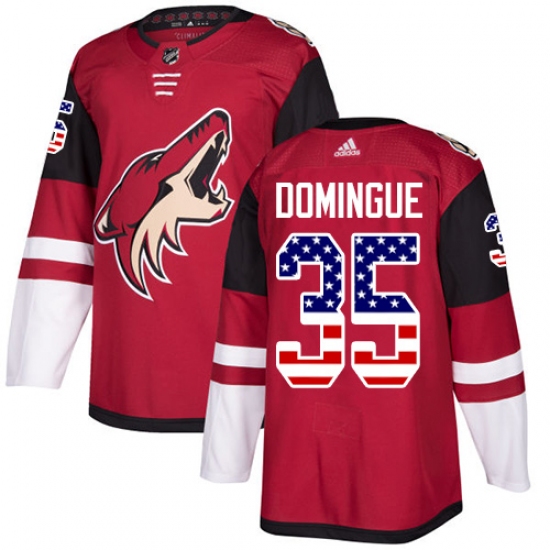 Home>NHL>Arizona Coyotes>Louis Domingue>Men's Adidas Arizona Coyotes #35 Louis Domingue Authentic Red USA Flag Fashion NHL Jersey