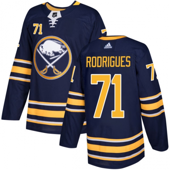 Home>NHL>Buffalo Sabres>Evan Rodrigues>Men's Adidas Buffalo Sabres #71 Evan Rodrigues Authentic Navy Blue Home NHL Jersey