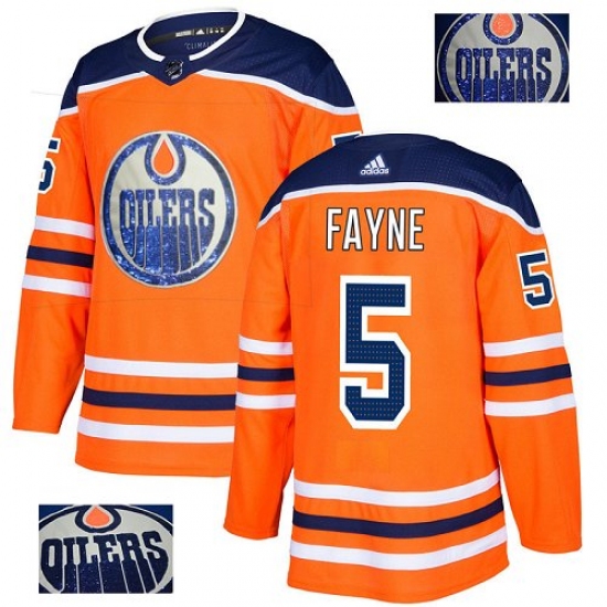 Men's Adidas Edmonton Oilers #5 Mark Fayne Authentic Orange Fashion Gold NHL Jersey