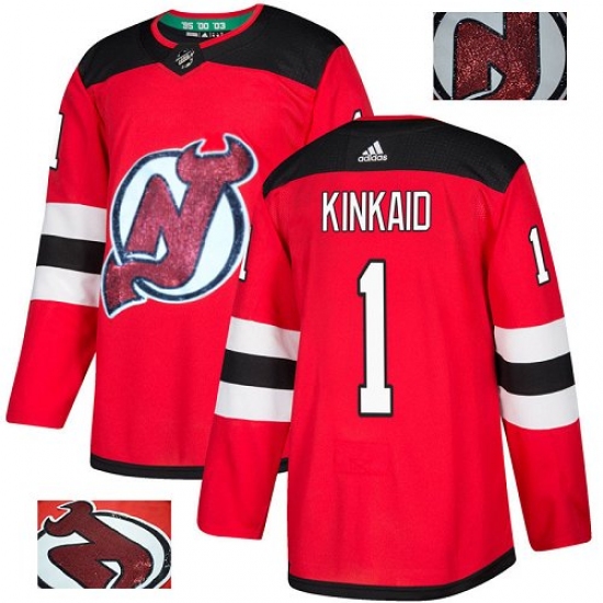 Men's Adidas New Jersey Devils #1 Keith Kinkaid Authentic Red Fashion Gold NHL Jersey