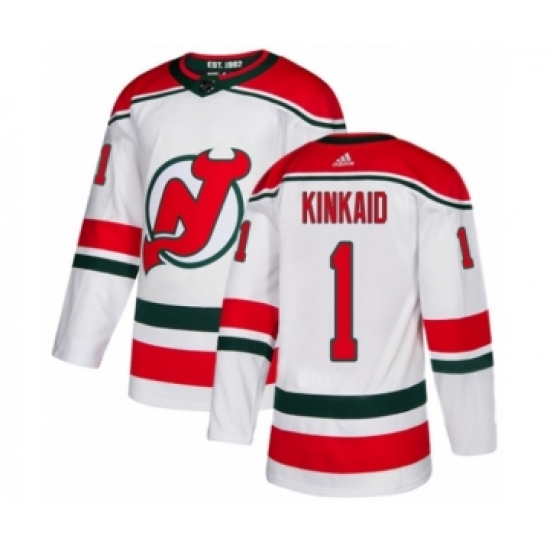 Men's Adidas New Jersey Devils #1 Keith Kinkaid Authentic White Alternate NHL Jersey
