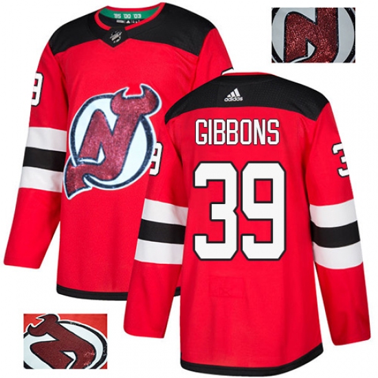 Men's Adidas New Jersey Devils #39 Brian Gibbons Authentic Red Fashion Gold NHL Jersey