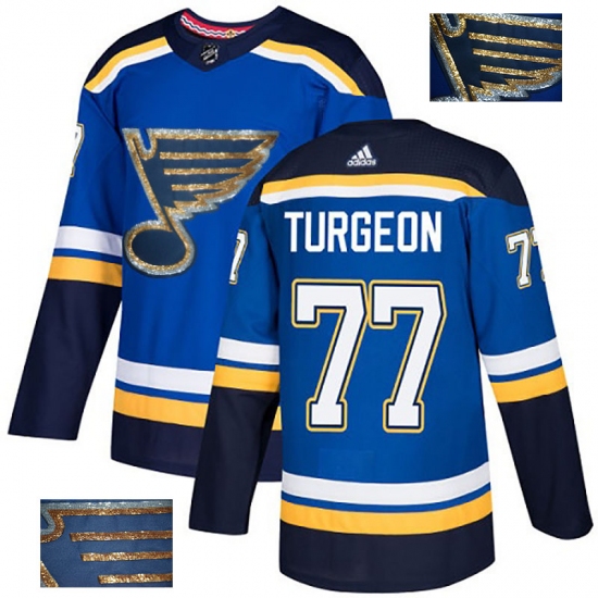 >Men's Adidas St. Louis Blues #77 Pierre Turgeon Authentic Royal Blue Fashion Gold NHL Jersey