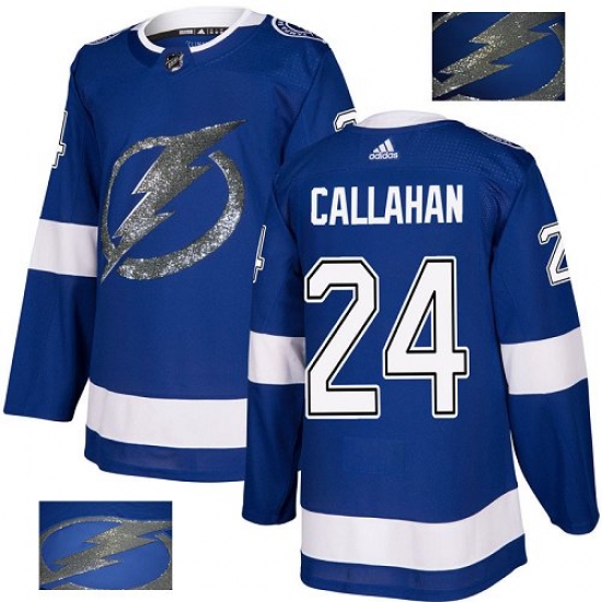 >Men's Adidas Tampa Bay Lightning #24 Ryan Callahan Authentic Royal Blue Fashion Gold NHL Jersey