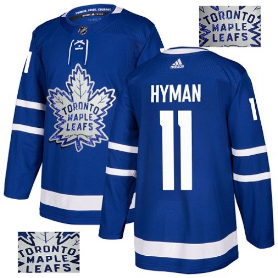 >Men's Adidas Toronto Maple Leafs #11 Zach Hyman Authentic Royal Blue Fashion Gold NHL Jersey