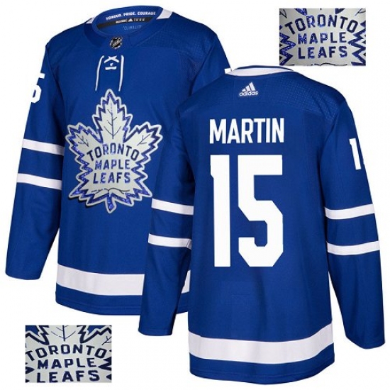 Men's Adidas Toronto Maple Leafs #15 Matt Martin Authentic Royal Blue Fashion Gold NHL Jersey