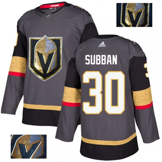>Men's Adidas Vegas Golden Knights #30 Malcolm Subban Authentic Gray Fashion Gold NHL Jersey