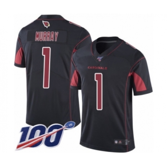 >Men's Arizona Cardinals #1 Kyler Murray Limited Black Rush Vapor Untouchable 100th Season Football Jersey