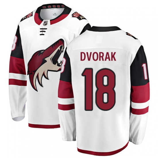 Home>NHL>Arizona Coyotes>Christian Dvorak>Men's Arizona Coyotes #18 Christian Dvorak Fanatics Branded White Away Breakaway NHL Jersey