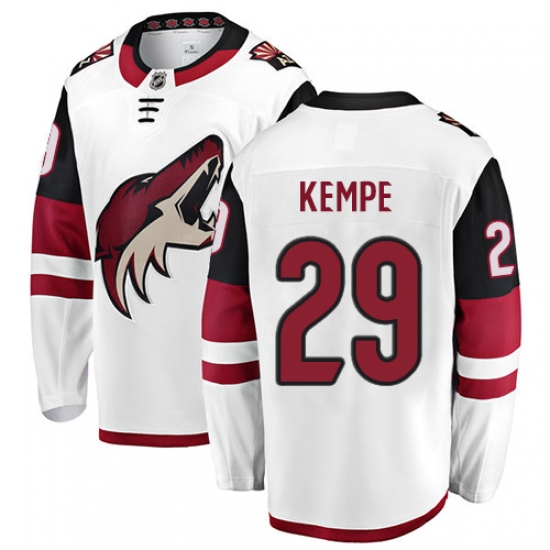 Home>NHL>Arizona Coyotes>Mario Kempe>Men's Arizona Coyotes #29 Mario Kempe Fanatics Branded White Away Breakaway NHL Jersey