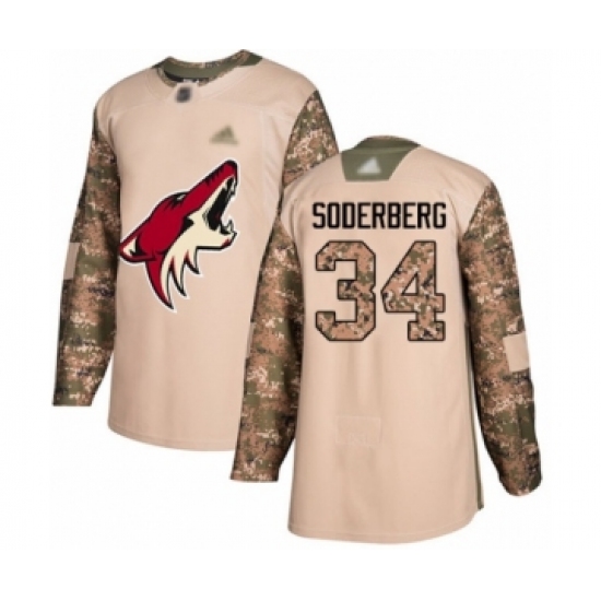 >Men's Arizona Coyotes #34 Carl Soderberg Authentic Camo Veterans Day Practice Hockey Jersey