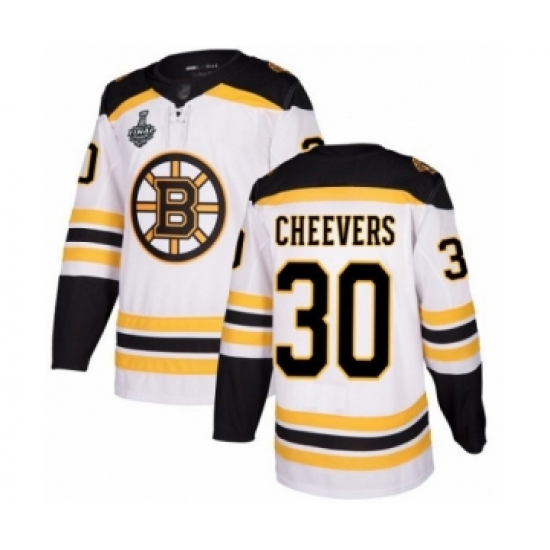 Men's Boston Bruins #30 Gerry Cheevers Authentic White Away 2019 Stanley Cup Final Bound Hockey Jersey
