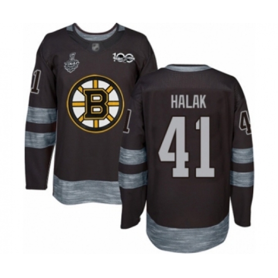 Men's Boston Bruins #41 Jaroslav Halak Authentic Black 1917-2017 100th Anniversary 2019 Stanley Cup Final Bound Hockey Jersey