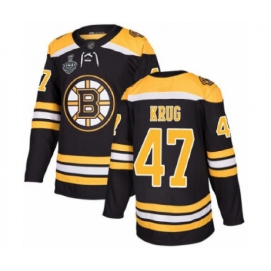 >Men's Boston Bruins #47 Torey Krug Authentic Black Home 2019 Stanley Cup Final Bound Hockey Jersey