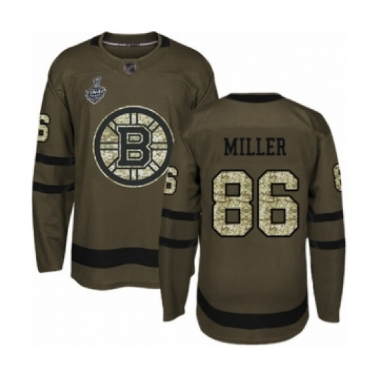 >Men's Boston Bruins #86 Kevan Miller Authentic Green Salute to Service 2019 Stanley Cup Final Bound Hockey Jersey