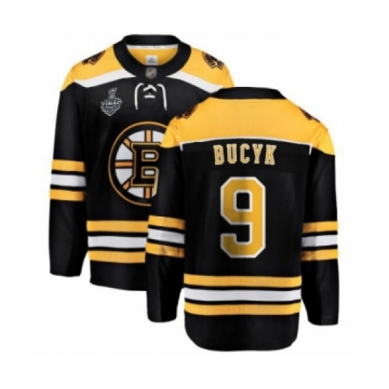 >Men's Boston Bruins #9 Johnny Bucyk Authentic Black Home Fanatics Branded Breakaway 2019 Stanley Cup Final Bound Hockey Jersey
