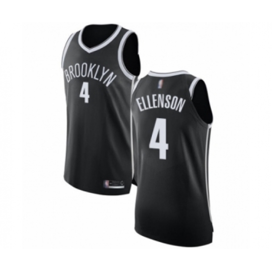 >Men's Brooklyn Nets #4 Henry Ellenson Authentic Black Basketball Jersey - Icon Edition