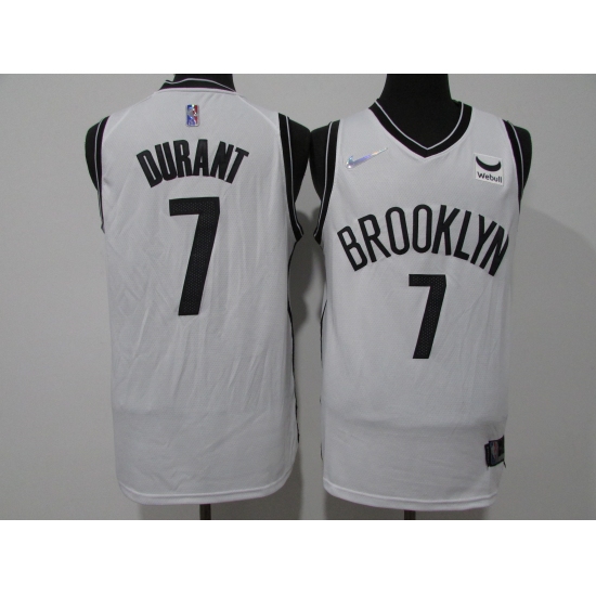 >Men's Brooklyn Nets #7 Kevin Durant White 75th Anniversary Diamond Stitched Jersey