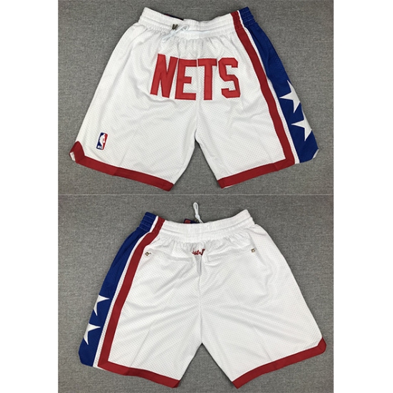 Men's Brooklyn Nets Retro White Shorts (Run Smaller)