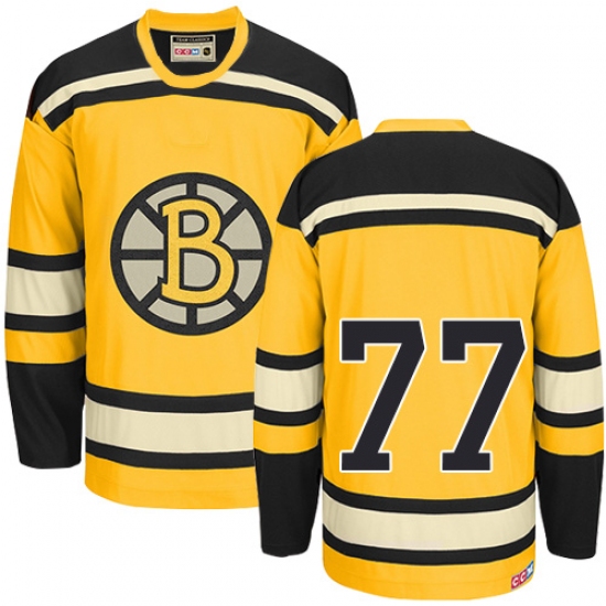 Men's CCM Boston Bruins #77 Ray Bourque Authentic Gold Throwback NHL Jersey