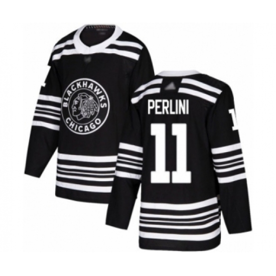 >Men's Chicago Blackhawks #11 Brendan Perlini Authentic Black Alternate Hockey Jersey