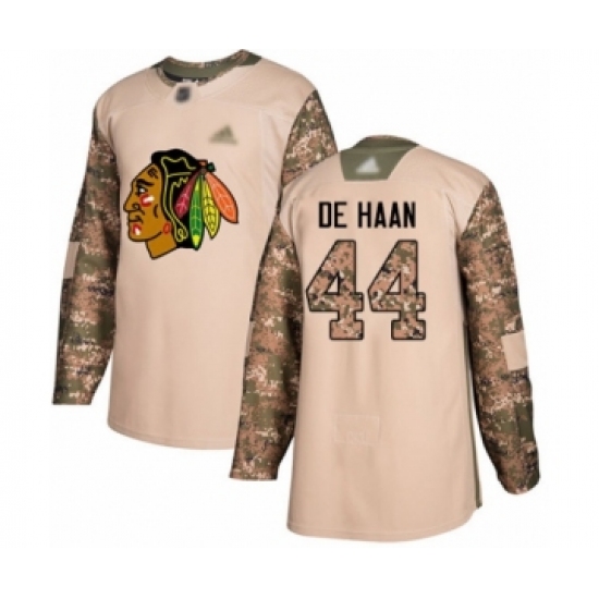 Men's Chicago Blackhawks #44 Calvin De Haan Authentic Camo Veterans Day Practice Hockey Jersey