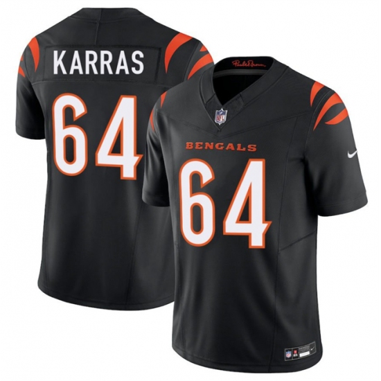 >Men's Cincinnati Bengals #64 Ted Karras Black 2025 F.U.S.E. Vapor Untouchable Limited Stitched Football Jersey