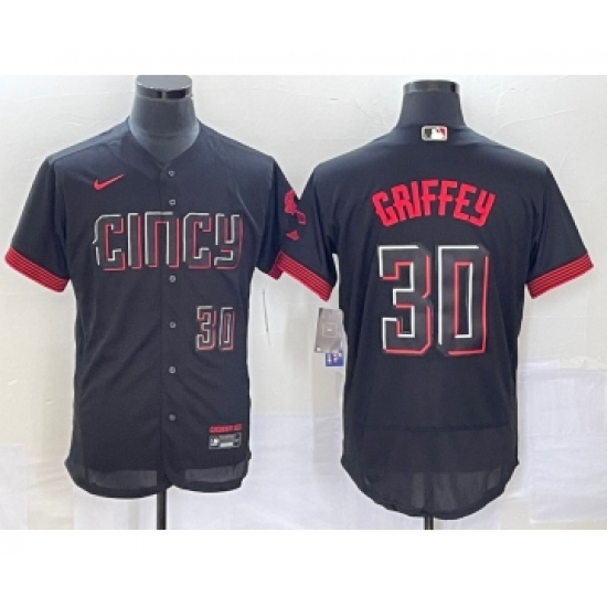 Men's Cincinnati Reds #30 Ken Griffey Jr Black 2023 City Connect Flex Base Stitched Jersey 1