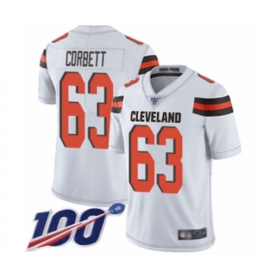 >Men's Cleveland Browns #63 Austin Corbett White Vapor Untouchable Limited Player 100th Season Football Jersey