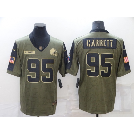Men's Cleveland Browns #95 Myles Garrett 2022 Olive Salute To Service Limited Stitched Jersey